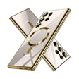 غطاء BURAQ المطلي بالكهرباء المصنوع من مادة TPU الآمنة لهاتف Samsung Galaxy S22 Ultra، غطاء حماية كامل لعدسة الكاميرا، جراب شحن لاسلكي من نسيج CD، جراب ناعم من مادة TPU بحواف ذهبية لهاتف Samsung Galaxy S22 Ultra
