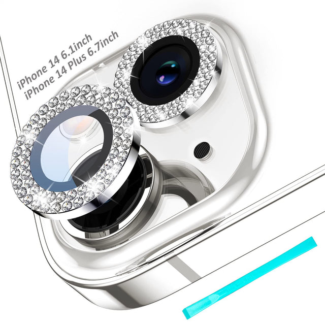 واقي عدسة كاميرا Tensea لهاتف iPhone 14 Plus/iPhone 14، غطاء حماية للكاميرا، واقي شاشة من الزجاج المقوى بحلقة معدنية ماسية فردية لهاتف iPhone 14 6.1 بوصة/iPhone 14 Plus 6.7 بوصة 2022