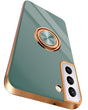 جراب حماية لهاتف سامسونج جالاكسي S22+ 5G/سامسونج جالاكسي S22 بلس 5G 2021. فتحات دقيقة مثالية لجميع المنافذ والأزرار ومكبر الصوت والكاميرا. جراب جالاكسي S22+ الرفيع مصنوع من مادة TPU عالية الجودة للحماية من الخدوش والصدمات. إطار مطلي كهربائيًا بنسيج معدني يضفي عليه لمعانًا وجمالًا. جراب جالاكسي S22+ المصنوع من مادة TPU مع حامل حلقي دوار 360 درجة، مثالي لمشاهدة الأفلام والفيديوهات والصور. يدعم خاصية التثبيت المغناطيسي للسيارة، مما يسهل عليك رؤية نظام تحديد المواقع العالمي (GPS) أثناء القيادة.