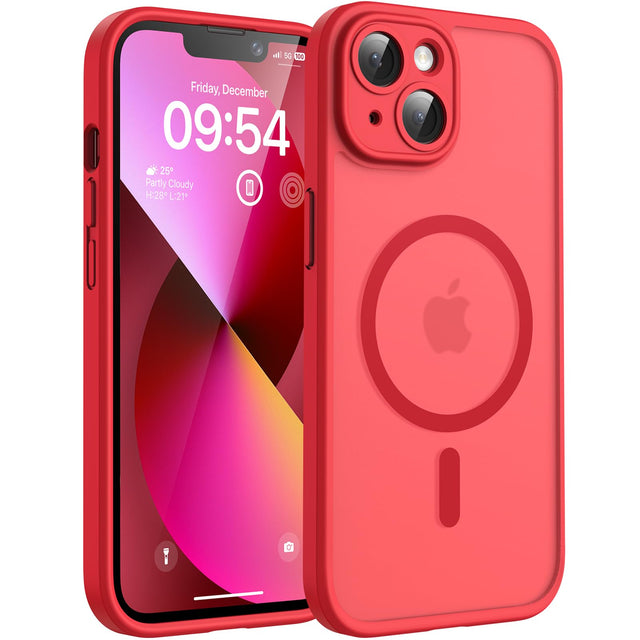 جراب TOCOL لهاتف iPhone 13 مغناطيسي مقاس 6.1 بوصة، حماية مطورة للكاميرا، متوافق مع MagSafe، مقاوم للصدمات بدرجة عسكرية، مضاد للخدش، غير لامع، شفاف غير قابل للانزلاق، أحمر
