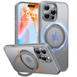 جراب TORRAS المغناطيسي القابل للدوران 360 درجة لهاتف iPhone 16 Pro، مناسب لـ MagSafe مع حامل وحامل حلقي، ظهر شفاف مقاوم للصدمات بدرجة عسكرية بطول 16 قدمًا لهاتف iPhone 16 Pro، رمادي