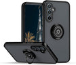 جراب TR-PLANET بحلقة معدنية دوارة لهاتف Samsung Galaxy S25 Plus - غطاء غير لامع ممتص للصدمات مع مسند، مضاد لبصمات الأصابع، متوافق مع حامل السيارة المغناطيسي، جراب خلفي صلب لهاتف S25 Plus، أسود/رمادي