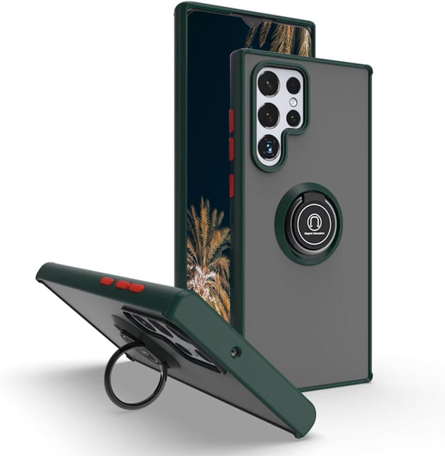 جراب TR-PLANET بحلقة معدنية دوارة لهاتف Samsung Galaxy S25 Ultra - غطاء ممتص للصدمات غير لامع مع مسند، متوافق مع حامل السيارة المغناطيسي، غطاء خلفي صلب لهاتف Samsung Galaxy S25 Ultra، أخضر/رمادي تم طلبه مرة أخرى وسيتم شحنه بمجرد توافره مرة أخرى في المخزون.