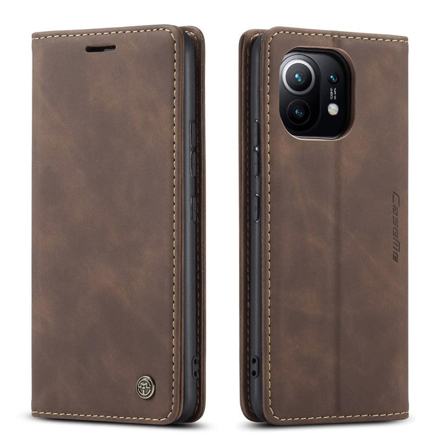 جراب محفظة جلدي من UniqCase قابل للامتصاص تلقائيًا لهاتف Xiaomi Mi 11 - لون القهوة