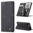 جراب هاتف مقاوم للغبار من UniqCase لهاتف Samsung Galaxy A22 5G (إصدار الاتحاد الأوروبي)، مصنوع من جلد البولي يوريثان الممتص تلقائيًا + محفظة TPU قابلة للطي - أسود