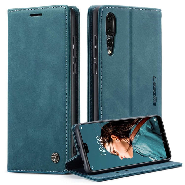 UniqCase لهاتف Huawei P20 Pro غطاء هاتف مضاد للخدش ومحفظة جلدية PU مغناطيسية ذاتية الامتصاص وقابلة للطي - أزرق