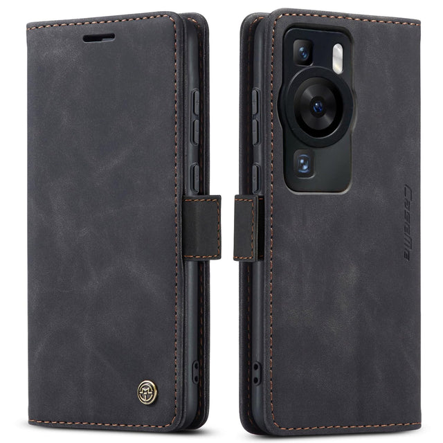 جراب UniqCase لهاتف Huawei P60 Pro مع حامل للبطاقات وغطاء جلدي للهاتف - أسود