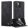 UniqCase لهاتف iPhone 14 مقاس 6.1 بوصة، جراب محفظة من جلد البولي يوريثان المقاوم للصدمات مع حامل مغناطيسي يمتص تلقائيًا - أسود