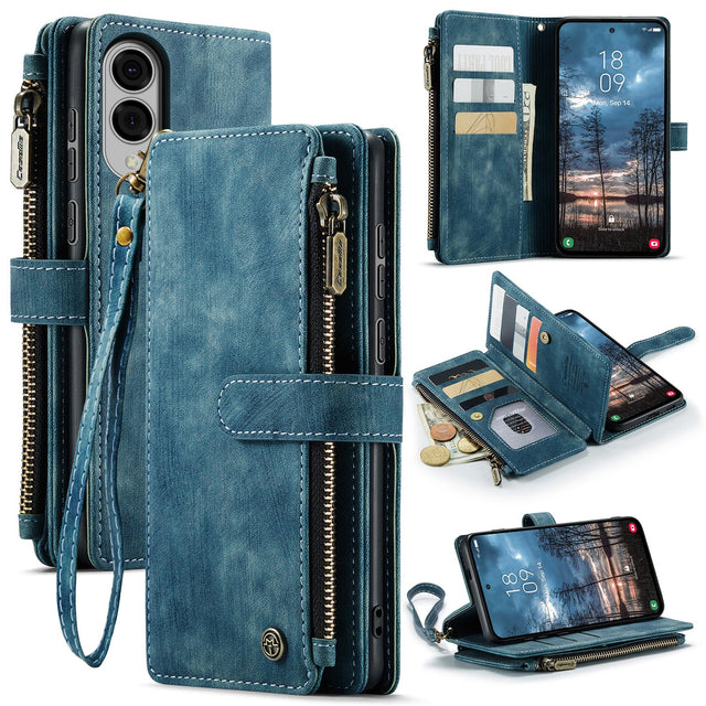 جراب هاتف UniqCase لهاتف Samsung Galaxy S25 Edge مزود بحزام وسحاب وحامل بطاقات متعدد وغطاء من جلد البولي يوريثان - أزرق وأخضر