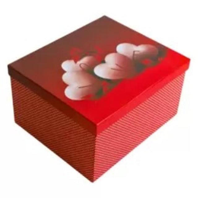 صندوق هدايا فارغ مربع أحمر بنقشة قلب أبيض ونقاط بولكا بيضاء بمناسبة عيد الحب - 14×9.5×8.5 سم