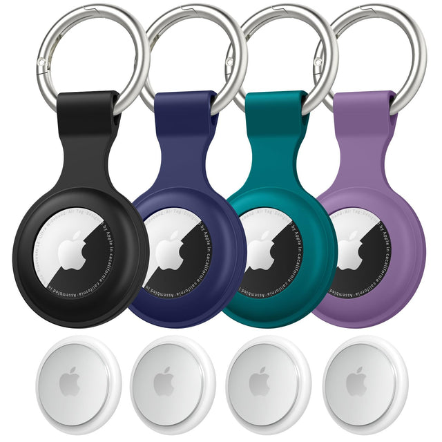 حامل علامة Airtag من السيليكون الناعم المتوافق مع Apple Airtag مع سلسلة مفاتيح، حافظة علامة Airtag مقاومة للماء، غطاء علامة Airtag لجهاز تعقب المفاتيح Airtag (أسود/أخضر غامق/أزرق داكن/أرجواني)