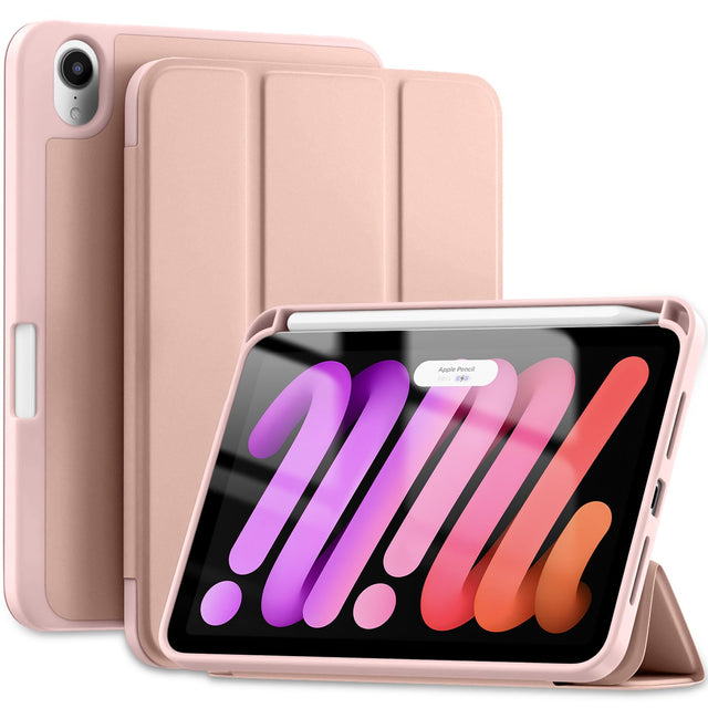 جراب Wenlaty لجهاز iPad Mini 7 2024 (A17 Pro)، جراب لجهاز iPad Mini 7/6 من الجيل 8.3 بوصة 2024/2021 مع حامل قلم رصاص، غطاء رفيع قابل للطي مع ظهر ناعم من مادة TPU، غطاء للنوم/التنشيط التلقائي، وردي وردي