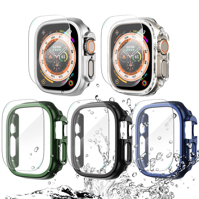 جراب WINGLE المقاوم للماء لساعة Apple Watch Ultra واقي شاشة 49 مم مع غطاء واقٍ من الزجاج المقوى، [5+5 عبوات] 2 في 1 إطار حماية كامل من البولي كربونات الصلب لساعة iWatch Ultra مقاس 49 مم جراب للرجال