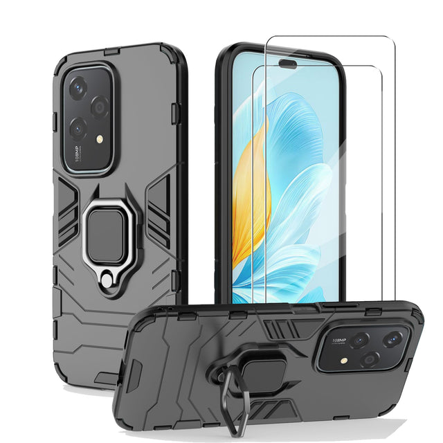 غطاء حماية WRTBS لهاتف Honor 200 Lite 5G مع واقي شاشة زجاجي [عبوة من قطعتين] غطاء حماية عسكري مزدوج الطبقات شديد التحمل ومقاوم للصدمات مع حامل حلقي مغناطيسي - Back-A