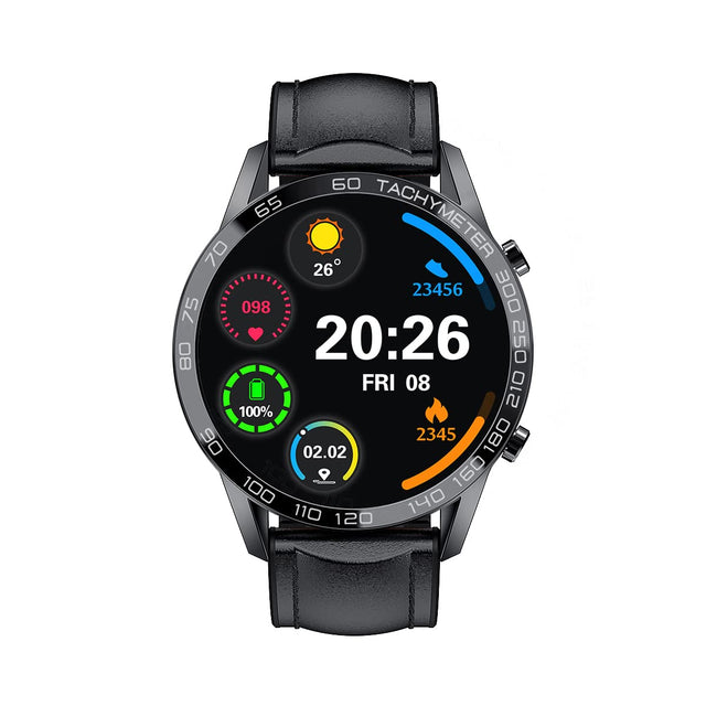 ساعة ذكية X.cell Classic -3TALK لمراقبة مستوى الأكسجين ومعدل ضربات القلب وتتبع تمرينك - واجهة عربية - بإطار أسود وحزام جلدي أسود