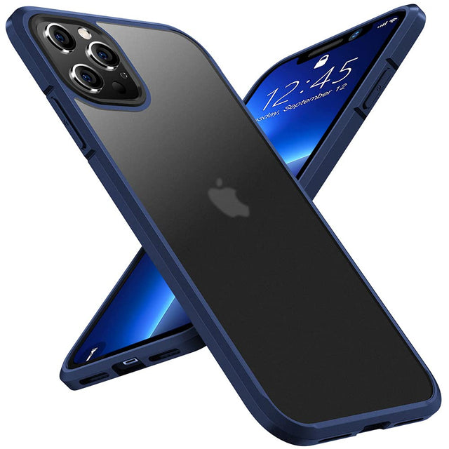 جراب X-Level المقاوم للصدمات والمتوافق مع iPhone 13 Pro Max [حماية من السقوط بدرجة عسكرية] غطاء خلفي صلب شفاف مضاد للسقوط من مادة البولي كربونات مع حافة سيليكون ناعمة - أزرق