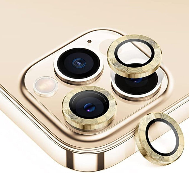 YU WELL واقي عدسة iPhone - واقي عدسة كاميرا iPhone 12 pro /13 pro / 13 Pro Max، غطاء زجاجي للكاميرا واقي شاشة بحلقة معدنية فردية لموديلات iPhone (iPhone 13 Pro، ذهبي)