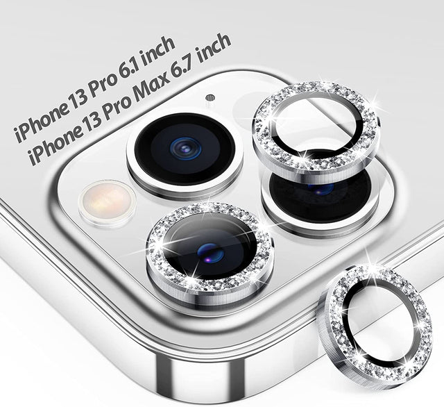 YU WELL واقي عدسة iPhone - واقي عدسة كاميرا iPhone 12 pro /13 pro / 13 Pro Max، غطاء زجاجي للكاميرا واقي شاشة بحلقة معدنية فردية لموديلات iPhone (iPhone 13 Pro، فضي ماسي)