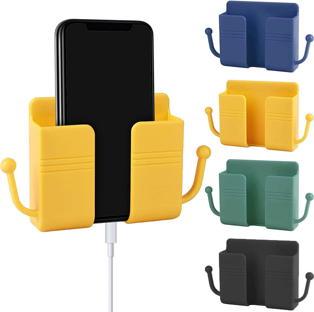 عبوة من 4 ألوان - أزرق، أخضر، أصفر وأسود 【توفير المساحة】 مصمم لتوفير المساحة، تصميم أنيق، بسيط وعصري، يستخدم لحمل الهواتف المحمولة/جهاز التحكم عن بعد. 【سهل التركيب】 ثبته على الحائط بسطح أملس. مع شريط لاصق على الوجهين، لزوجة قوية، لا حاجة إلى براغي. موفر للمساحة وسهل الاستخدام في أي مكتب أو منزل. 【سهل الاستخدام】حامل الحائط مثالي لشحن هاتفك المحمول بأمان في غرفة النوم دون شغل مساحة ثمينة على طاولة السرير. قم بتثبيته على جانب طاولة السرير، أو مباشرة على لوح الرأس أو على الحائط كنقطة شحن سهلة الاستخدام، أو ساعة ومنبه 【فتحة شحن محجوزة】حامل الهاتف هذا يتميز بفتحة شحن محجوزة، حامل الهاتف هذا مناسب للشحن.
